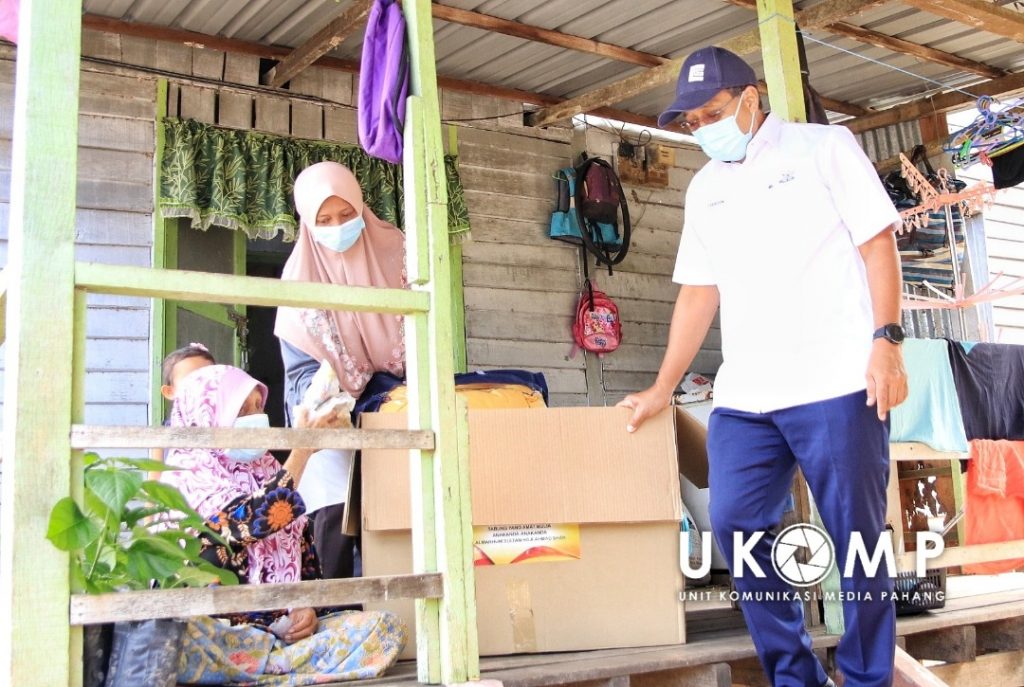 Beliau juga mengagihkan sumbangan tilam daripada Majlis Ugama Islam dan Adat Resam Melayu Pahang (MUIP) serta sumbangan barangan makanan oleh Menteri Besar Pahang.