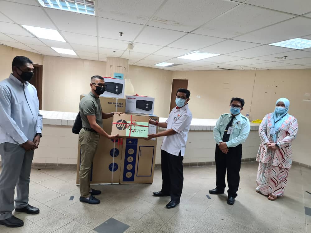 Pada majlis itu, beliau telah menerima sumbangan barangan elektrik berupa peti sejuk, ketuhar pembakar dan komputer riba bagi kegunaan semua petugas.