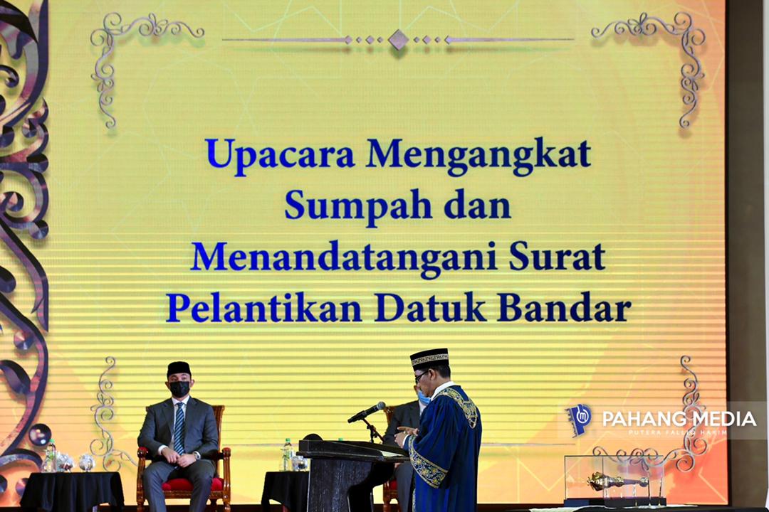 “Beta juga dengan ini melantik Yang Hormat Dato’ Hamdan Hussin sebagai Datuk Bandar Majlis Bandaraya Kuantan. Beta juga selanjutnya merasmikan Kompleks Majlis Bandaraya Kuantan,” titah baginda. – PAHANGMEDIA