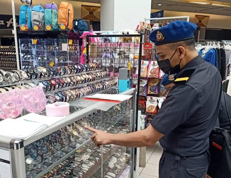 Kementerian Perdagangan Dalam Negeri dan Hal Ehwal Pengguna (KPDNHEP) Negeri Pahang merampas 568 unit jam tangan pelbagai jenama bernilai RM25,000 dalam serbuan di dua permis di sekitar Kuantan Parade.