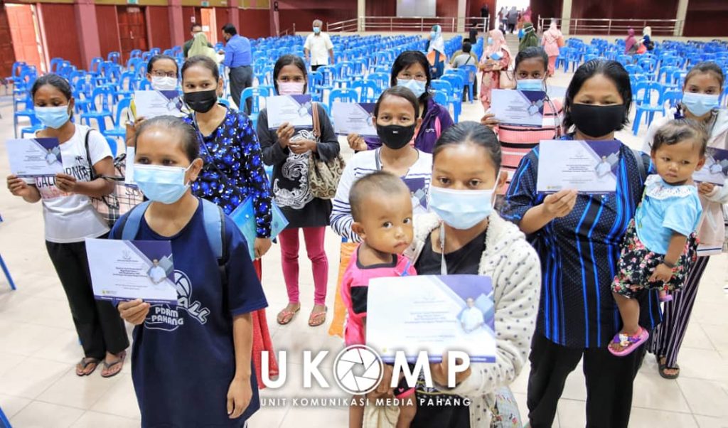 PEKAN, 6 APRIL 2021: “Terima kasih Kerajaan Pahang bantu kami, dapatlah meringankan beban ditanggung terutama ketika sesi persekolahan dibuka baru-baru ini,” itu kata ibu bapa yang gembira selepas anak mereka menerima sumbangan ‘one-off’ RM100 kepada murid tahun satu Pahang menerusi program Bantuan Prihatin Pahang hari ini.