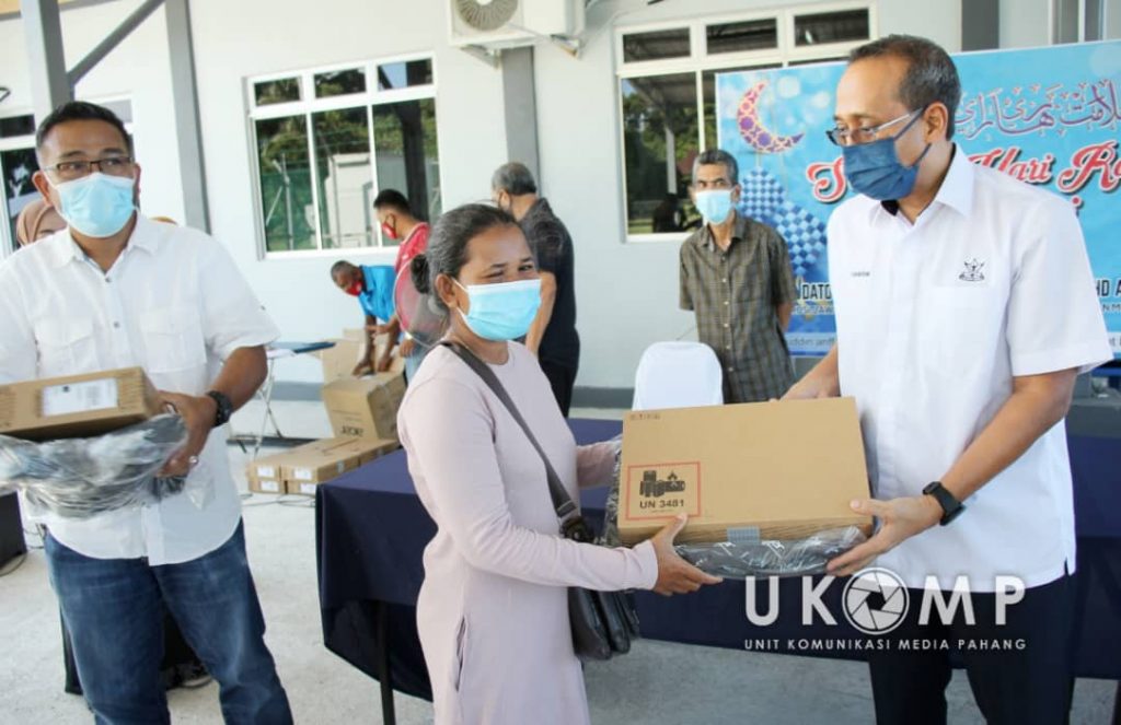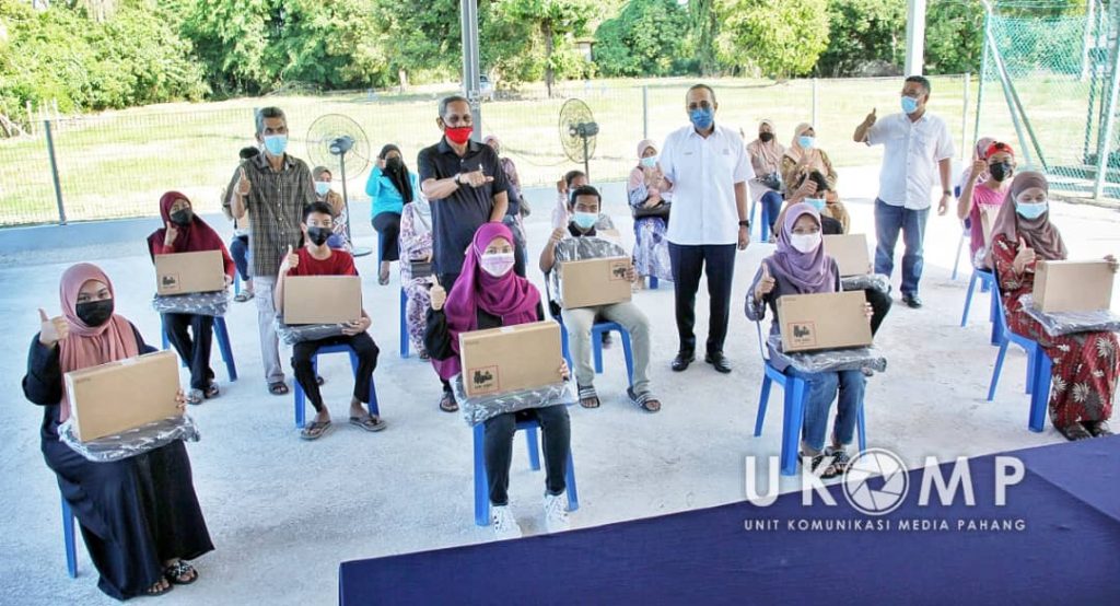 PEKAN, 11 MEI 2021: Seramai 20 pelajar pelajar sekolah menengah dari keluarga kurang berkemampuan di sekitar Dewan Negeri (DN) Bebar yang bakal menduduki Sijil Pelajaran Malaysia (SPM) menerima sumbangan komputer riba daripada Kerajaan Pahang, semalam.