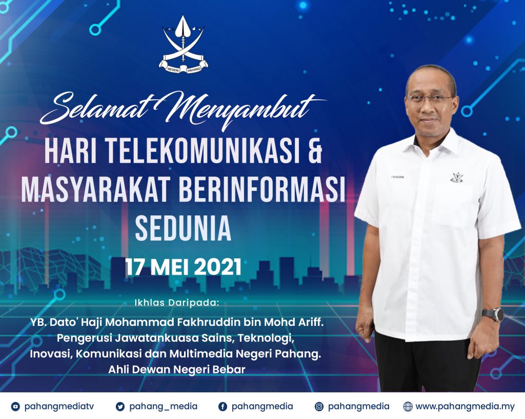 YB. Dato’ Haji Mohammad Fakhruddin berkata, bertepatan dengan tema WTISD pada tahun ini iaitu “Accelerating Digital Transformation in challenging times” diharapkan semua pihak akan mampu menghadapi cabaran pandemik COVID-19 ini dan terus memacu pembangunan industri komunikasi serta multimedia Negeri Pahang ke tahap yang lebih baik.