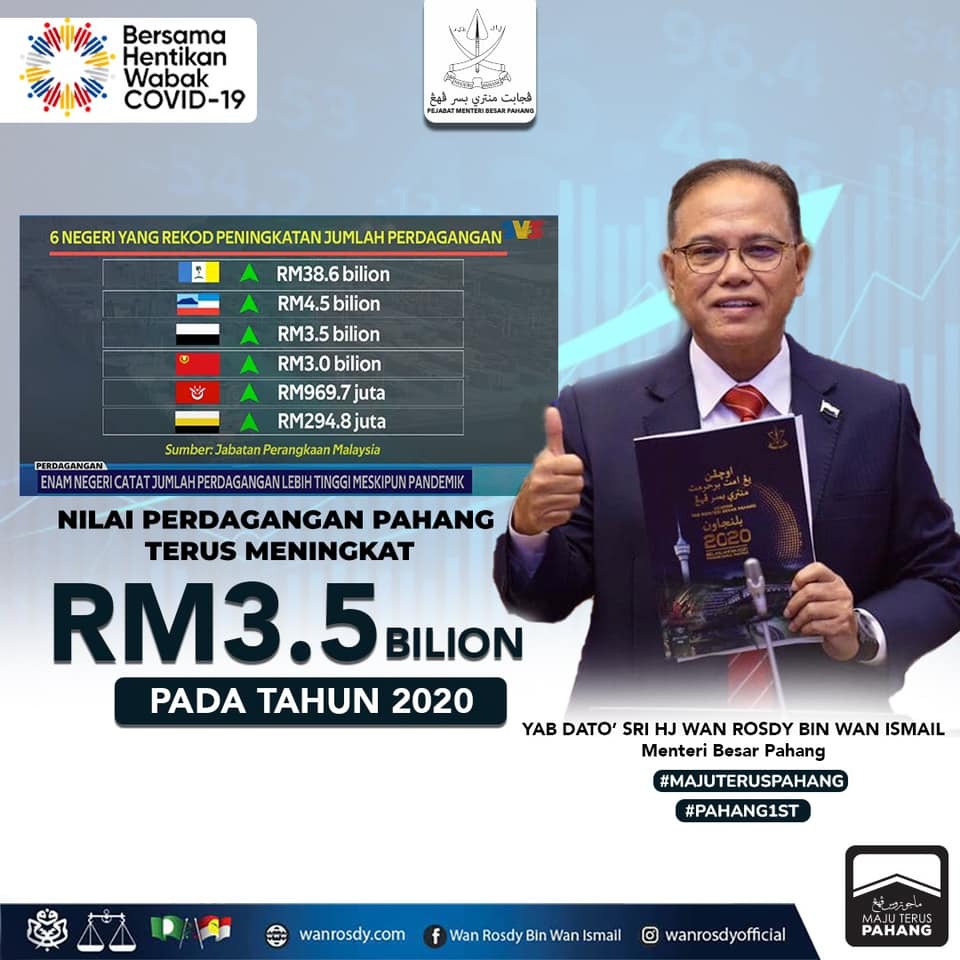YAB Menteri Besar Pahang, Dato’ Sri Haji Wan Rosdy Wan Ismail berkata, pencapaian Pahang sudah pasti susulan perancangan dasar dan inisiatif pelaburan aktif oleh Kerajaan Negeri yang diperkenal dan dilaksanakan sejak 2018.