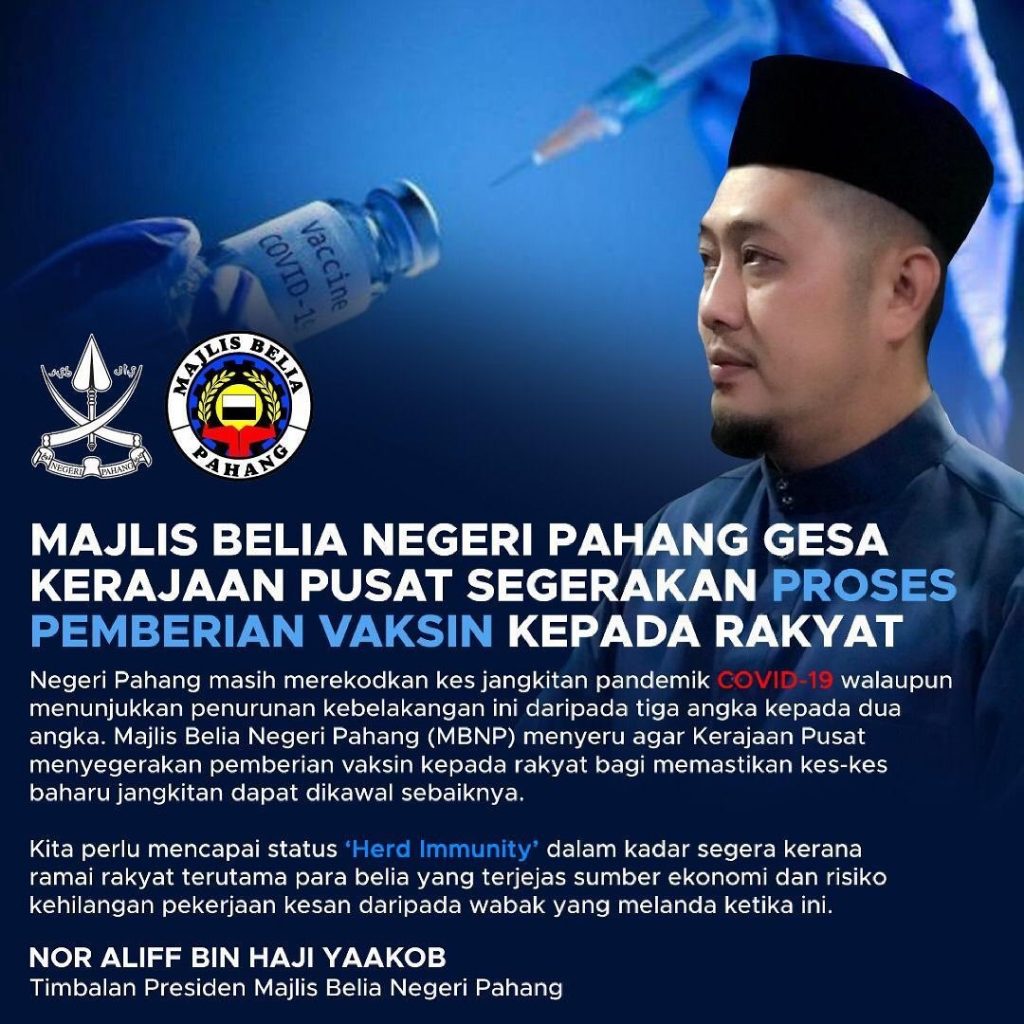 “MBNP juga turut menyokong gesaan daripada Kerajaan Pahang yang berharap Kerajaan Pusat dapat menyegerakan program vaksinasi ini kepada penduduk Pahang.
