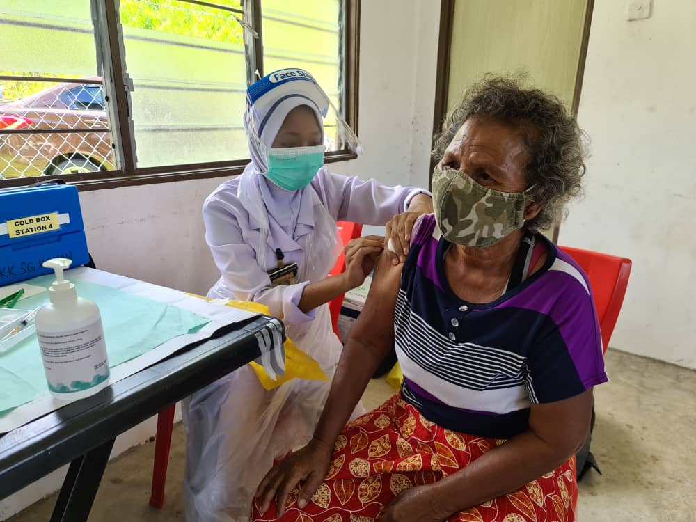 “Saya mengambil kesempatan ini untuk mengucapkan terima kasih kepada pihak kerajaan kerana bersusah payah memberi vaksin kepada penduduk seperti kami di kawasan pedalaman, jadi kita tidak perlu keluar hanya tunggu sahaja di kampung, pihak KKM datang untuk memberi suntikan vaksin,” katanya.