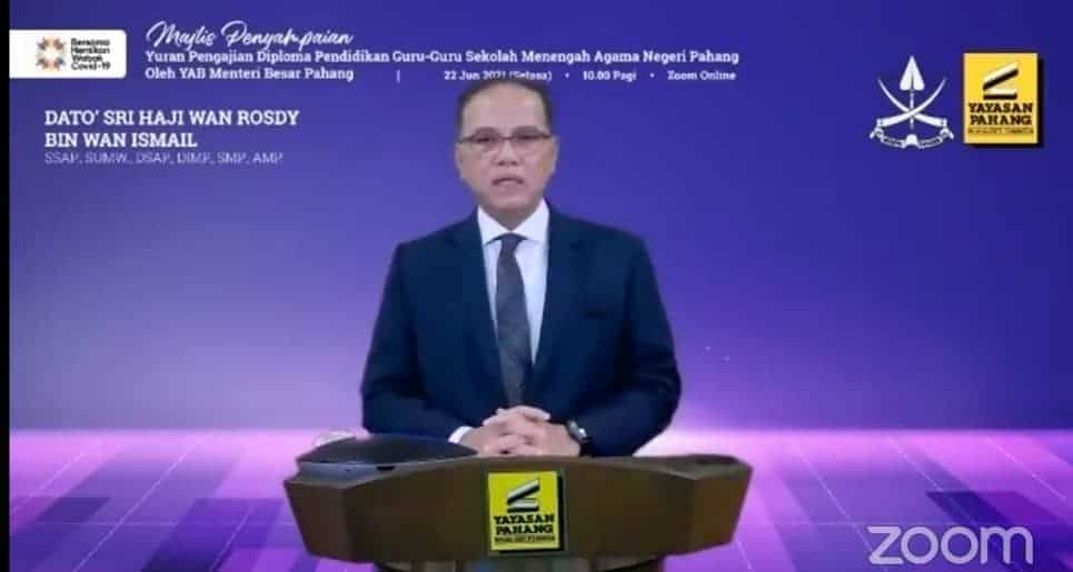 Majlis penyampaian sumbangan berkenaan disempurnakan oleh YAB Menteri Besar Pahang, Dato’ Sri Haji Wan Rosdy Wan Ismail yang diadakan secara maya hari ini.