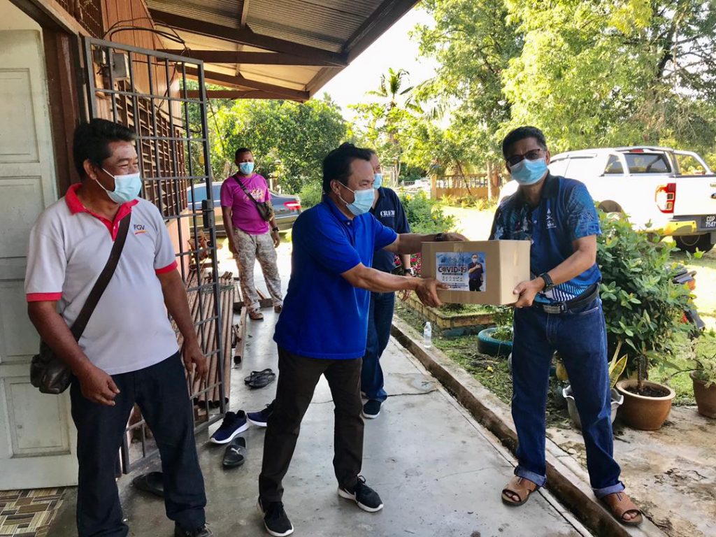 Setiausaha UMNO Bahagian Jerantut, YH. Dato’ Zukarmi Abu Bakar (kanan) ketika menyampaikan sumbangan Bantuan Prihatin Pahang (BBP).
