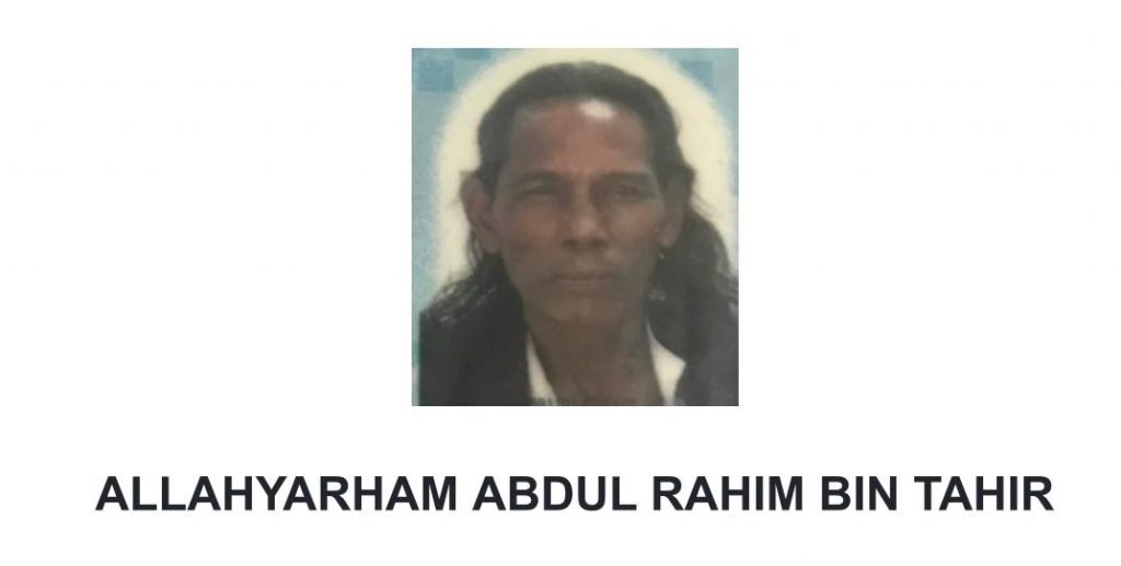 Lelaki berkenaan Abdul Rahim Tahir, 62, dimaklumkan beralamat di No. 1, Jalan Bukit Ubi, 25000 Kuantan, Pahang sebagai alamat terakhirnya, namun semakan pihak HTAA mendapati alamat yang diberikan tidak benar kerana ia merupakan premis perniagaan.