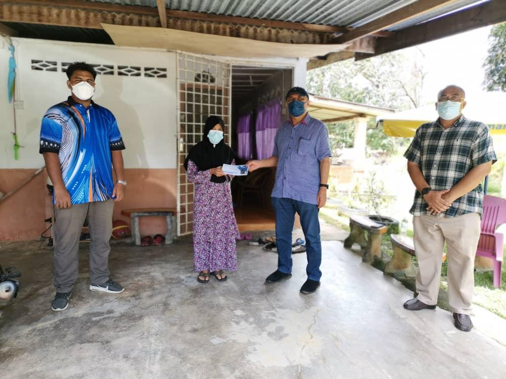 Sumbangan disampaikan oleh Pengerusi Jawatankuasa Pertanian, Industri Asas Tani dan Bioteknologi Negeri Pahang yang juga Ahli Dewan Negeri Benta, YB. Dato’ Sri Ir Haji Mohd Soffi Tan Sri Abd Razak ketika mengunjungi ke kediaman semua penerima.