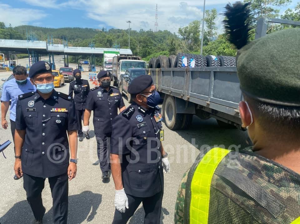 “Sehingga jam 1 petang tadi, seramai 880 individu dan 780 buah kenderaan telah diperiksa. Manakala sebanyak 39 buah kenderaan telah diarah berpatah balik kerana tujuan pergerakan yang tidak munasabah dengan menggunakan surat MITI.
