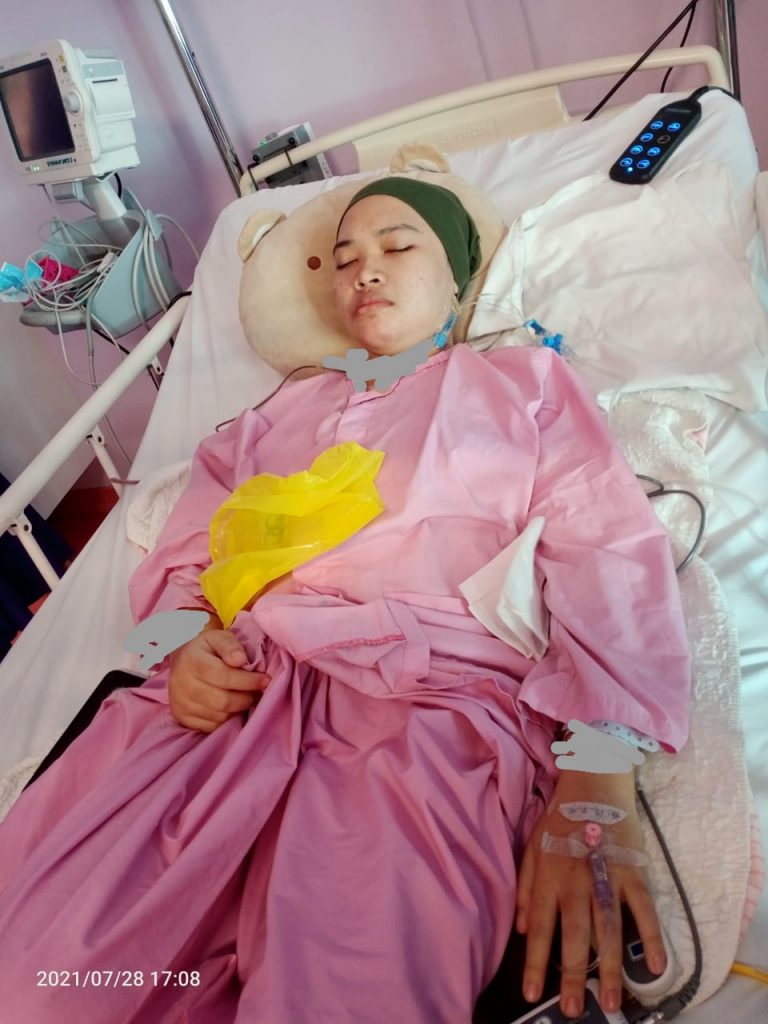 Adik Zulaikha Al-Hasanah Zulkalnain Shamsi, 21, menghidapi yang menderita penyakit batuk kering atau Tuberkulosis (TB) tahap kritikal selepas selesai pembedahan.