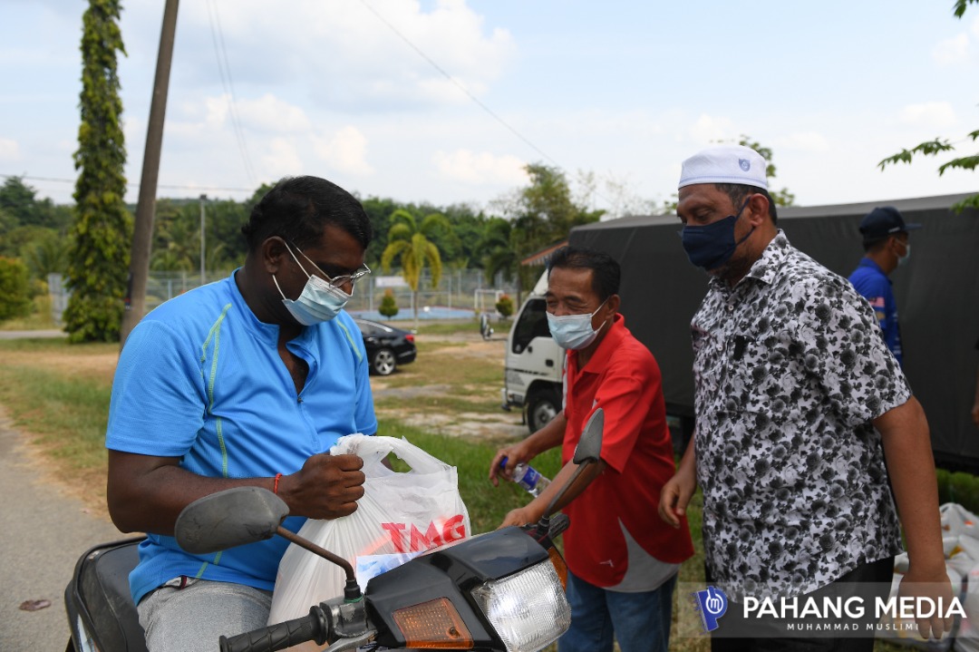 JENGKA, 07 OGOS 2021 : Kerajaan Pahang sumbang 172 kit makanan keperluan asas bernilai RM8,600 kepada generasi kedua FELDA di kawasan Dewan Negeri (DN) Kerdau.