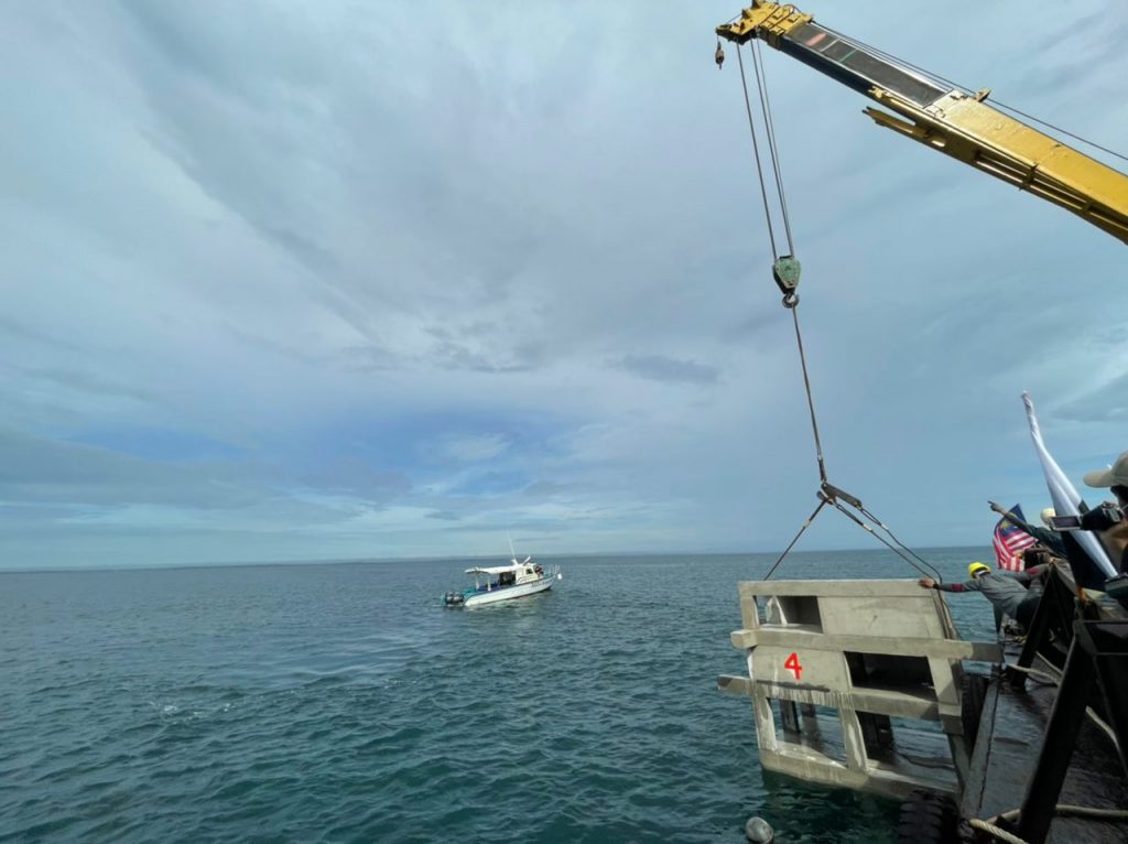 KUANTAN, 16 OGOS 2021 : Jabatan Perikanan Pahang melabuhkan sepuluh tukun tiruan bernilai RM325,000 di perairan Cherok Paloh bagi meningkatkan sumber perikanan dan habitat marin di kawasan tersebut.