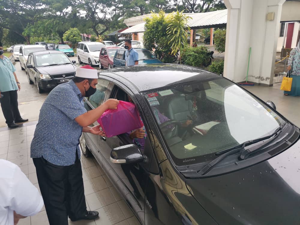 “Pagi ini saya menyampaikan Bantuan Prihatin Pahang kepada 19 orang Pelajar cemerlang SPM 2020, 22 orang pekerja dewan makan dan 12 orang pekerja kantin sekolah.