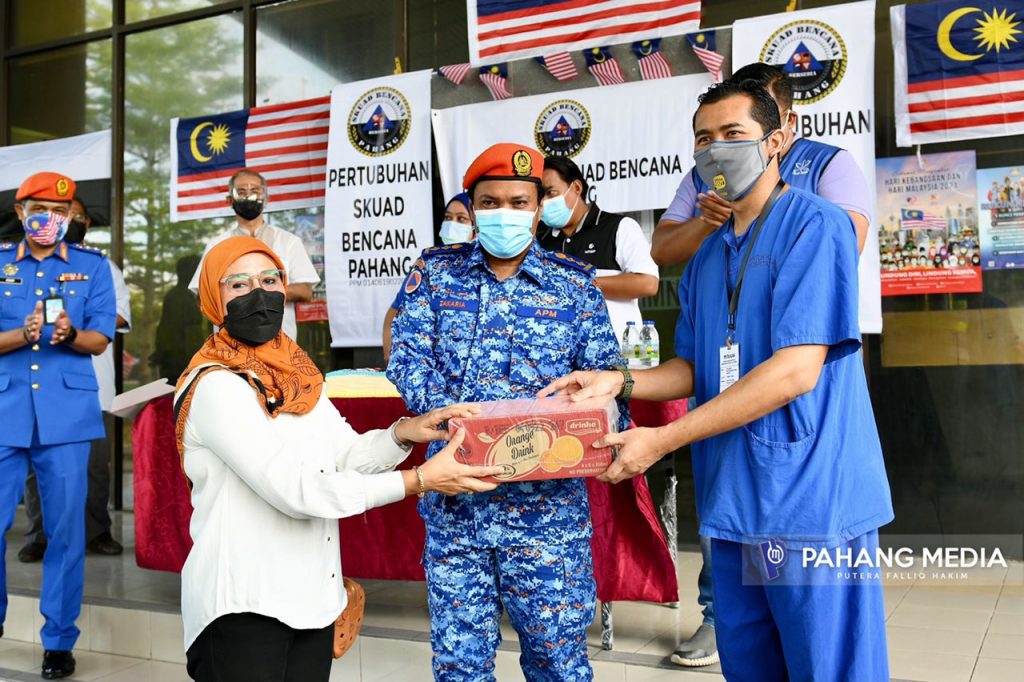 “Sumbangan ini hasil kerjasama bersama PRONITA, PBSM, Pertubuhan Skuad Bencana Pahang dan Dana Mawadah untuk meraikan frontliners kita sebagai tanda penghargaan di atas pengorbanan mereka yang tidak mengira masa dan waktu bekerja dalam bersama kita menguruskan pandemik COVID-19,” katanya.