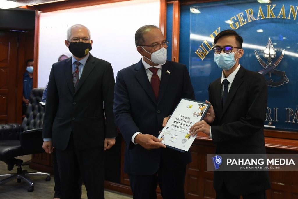 KUANTAN, 1 SEPTEMBER 2021: Seramai empat pelajar cemerlang di Negeri Pahang menerima sumbangan biasiswa pendidikan manakala 16 pelajar pula menerima wang pendahuluan sebagai persediaan ke Jordan.