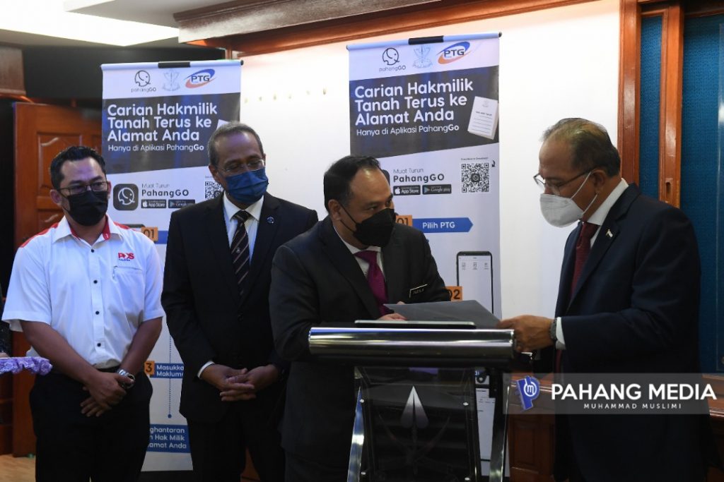 KUANTAN, 1 SEPTEMBER 2021: Pejabat Pengarah Tanah dan Galian (PTG) Pahang dengan kerjasama syarikat Pahang Go Sdn Bhd, berjaya membangunkan modul tempahan carian hakmilik tanah melalui aplikasi PahangGo.