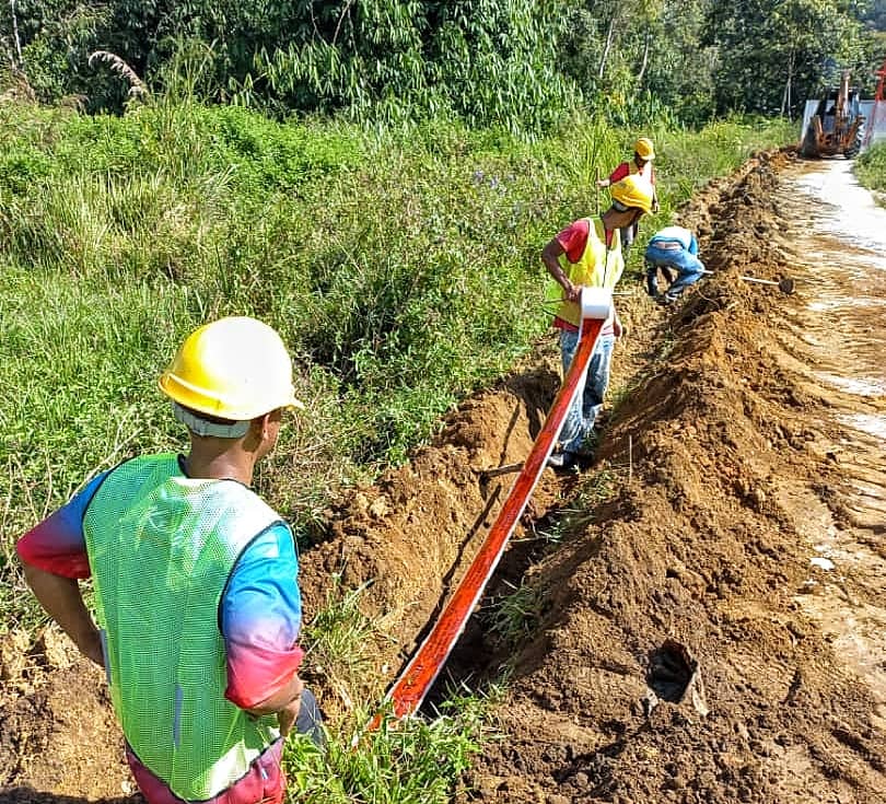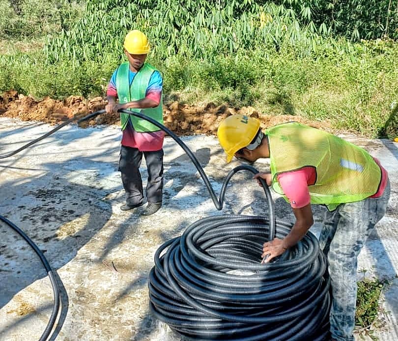 Kerja-kerja pemasangan fiber optik ke menara telekomunikasi POS Lemoi di Cameron Highlands.