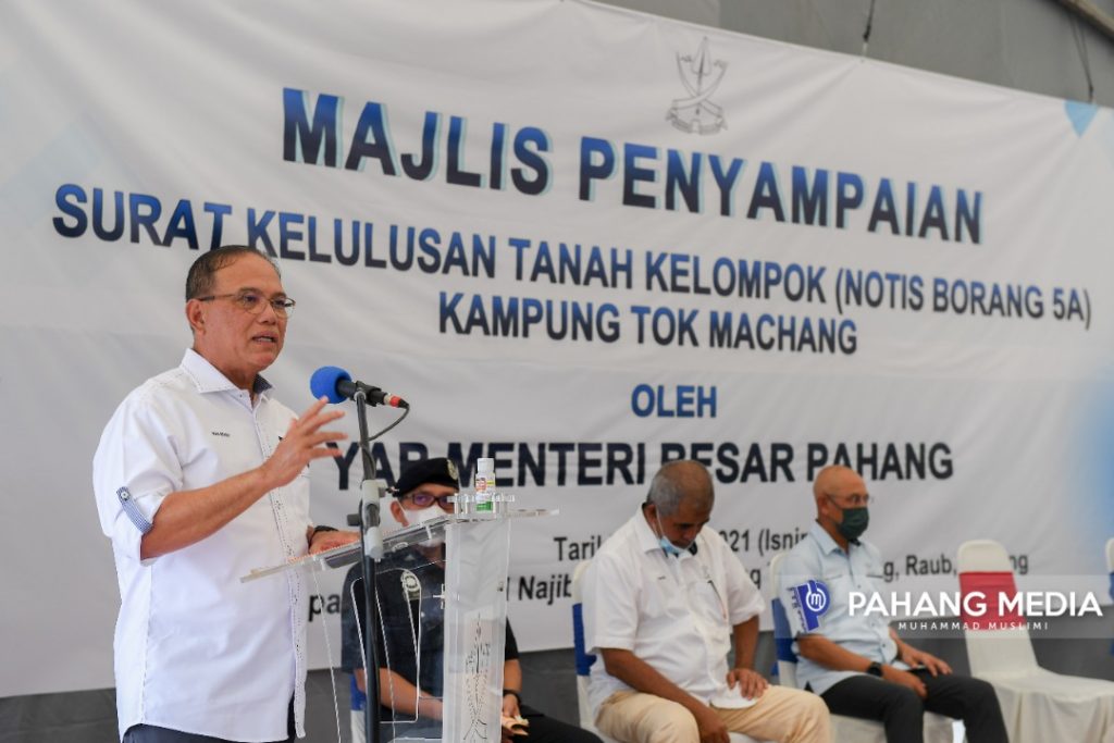 Beliau berkata demikian pada sidang media selepas menyampaikan surat kelulusan semasa Majlis Penyampaian Surat Kelulusan Tanah Kelompok (Notis Borang 5A) di Kampung Tok Macang di Dewan Najib Razak di sini.