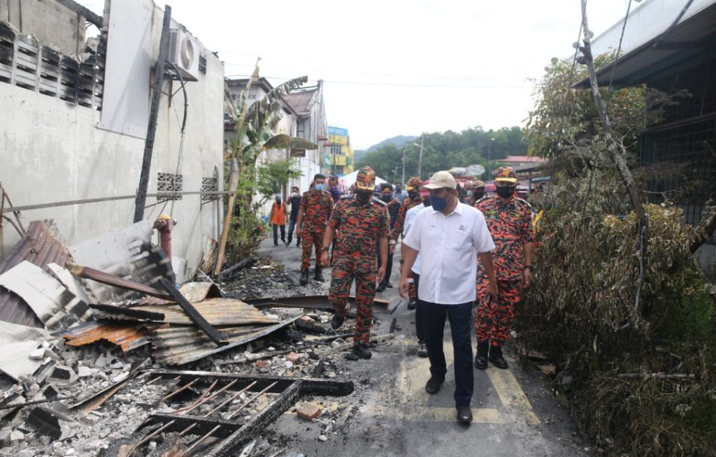 KUANTAN, 2 OKTOBER 2021 : Sebanyak 51 rumah dan lapan kedai di Kampung Baru Cina, Karak, Bentong musnah dalam kebakaran pada malam semalam.
