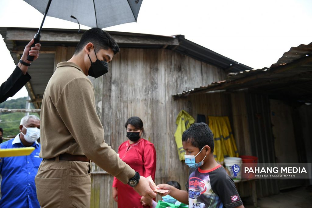 CAMERON HIGHLANDS, 6 OKTOBER 2021: Kebawah Duli Yang Maha Mulia Pemangku Raja Pahang Tengku Mahkota Tengku Hassanal Ibrahim Alam Shah Ibni Al-Sultan Abdullah Ri’ayatuddin Al-Mustafa Billah Shah berkenan berangkat menyantuni masyarakat Kampung Orang Asli Sungai Ubi di sini, semalam.