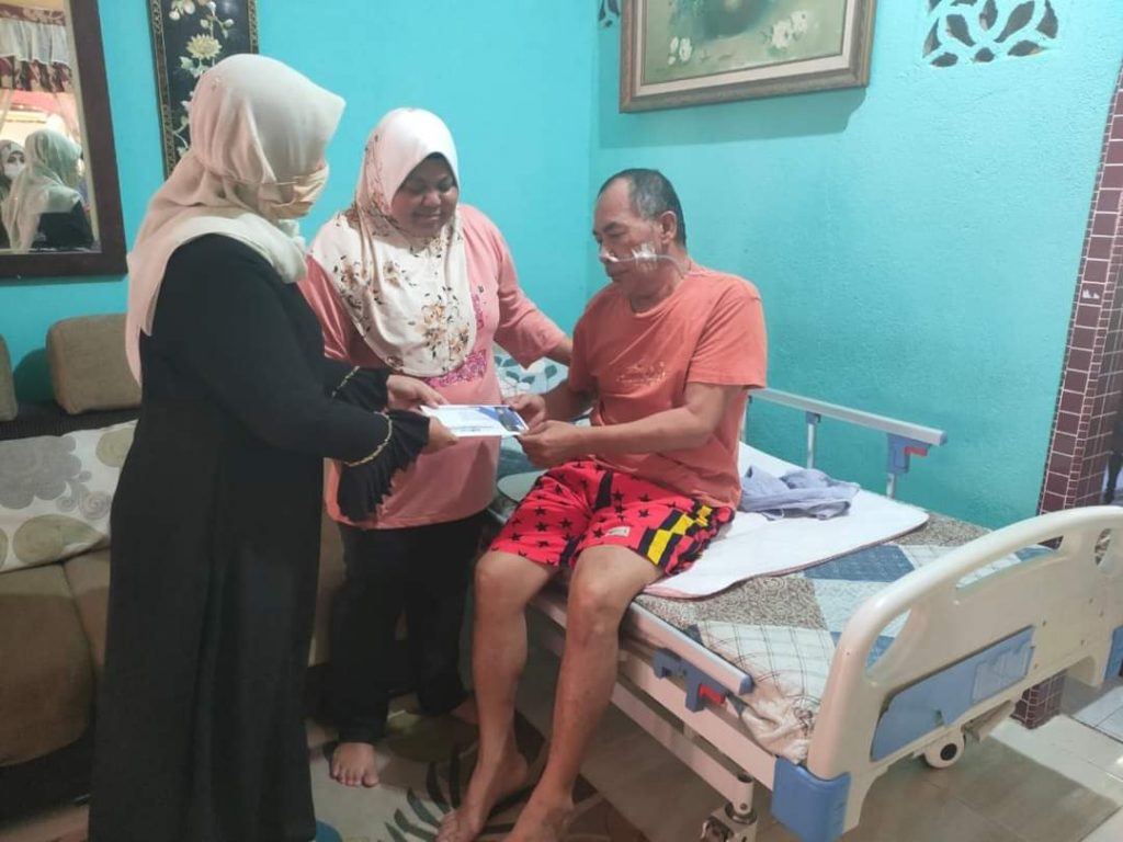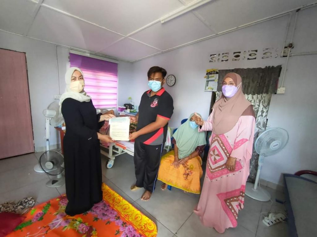 Pengerusi Jawatankuasa Perpaduan, Kebajikan Masyarakat, Pembangunan Wanita Dan Keluarga Negeri Pahang, YB Dato’ Sri Hajah Shahaniza Shamsuddin menyampaikan bantuan kerajaan negeri berjumlah RM2,000 kepada Encik Mohd Noh yang mengalami sakit strok di Jengka 2, Maran.