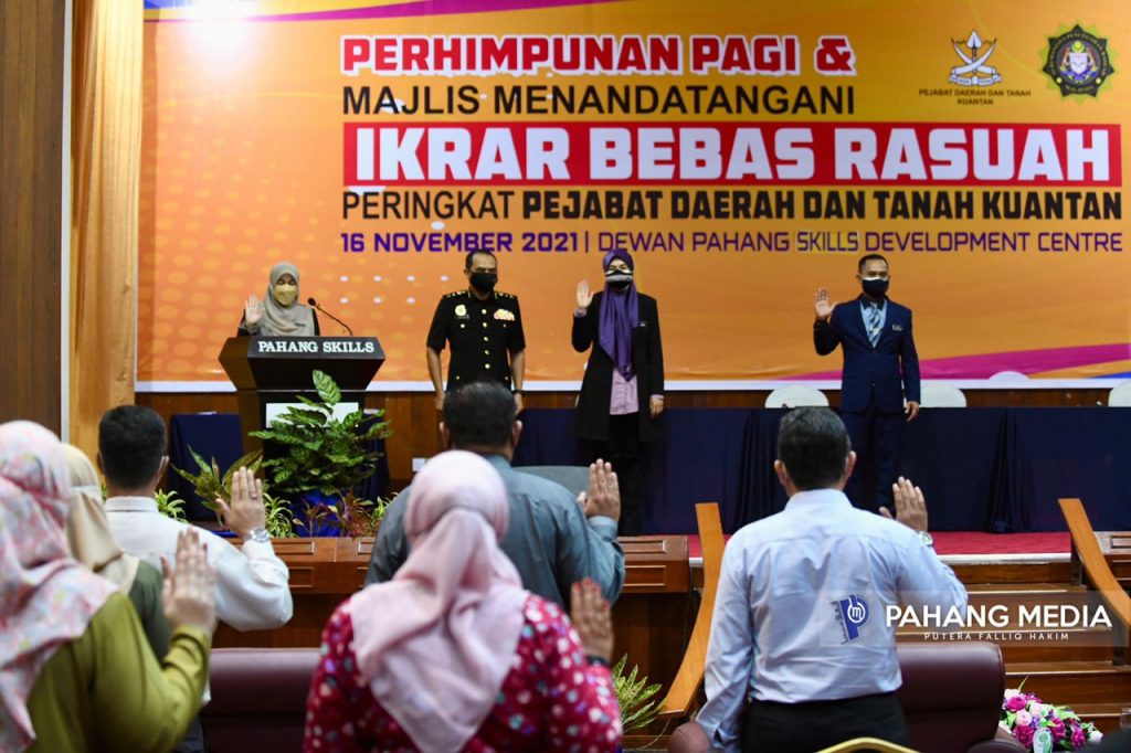 Beliau berkata demikian ketika Perhimpunan Pagi dan Majlis Menandatangani Ikrar Bebas Rasuah Peringkat Pejabat Daerah dan Tanah Kuantan di Dewan Pahang Skills Development Centre di sini.