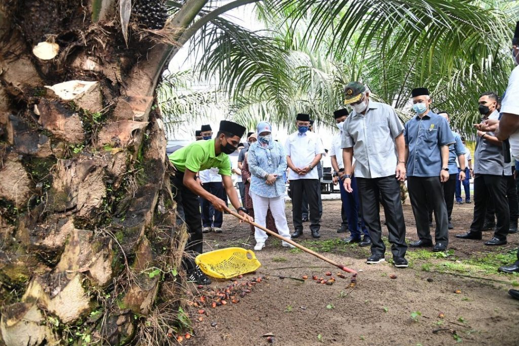 KUANTAN, 16 DISEMBER 2021 : Kebawah Duli Yang Maha Mulia Seri Paduka Baginda Yang di-Pertuan Agong Al-Sultan Abdullah Ri’ayatuddin Al-Mustafa Billah Shah Ibni Al-Marhum Sultan Haji Ahmad Shah Al-Musta’in Billah hari ini berkenan berangkat bercemar duli melawat ladang kelapa sawit milik Yayasan Pahang di Gambang, semalam.