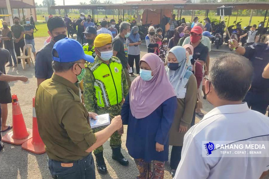 TEMERLOH, 23 DISEMBER 2021 : Kerajaan Pahang bercadang untuk menyimpan barangan keperluan asas di beberapa Pusat Pemindahan Sementara (PPS) bagi mengelakkan kelewatan dalam penghantaran bantuan kepada mangsa banjir.