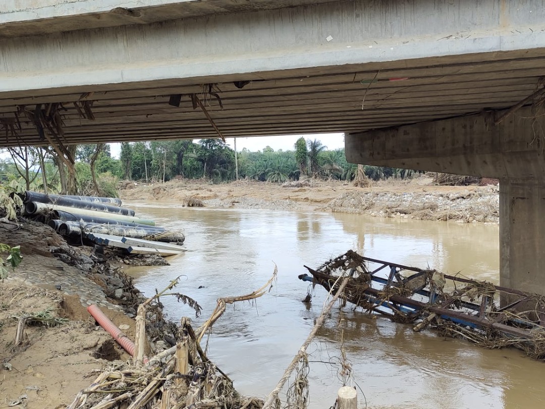 Menurutnya, ekoran kejadian banjir yang berlaku pada baru-baru ini juga telah menyebabkan steel girder yang membawa paip utama Mild Steel (MS) 350mm dan 200mm patah di bawa arus sungai yang deras turut mengakibatkan beberapa kawasan terputus bekalan.