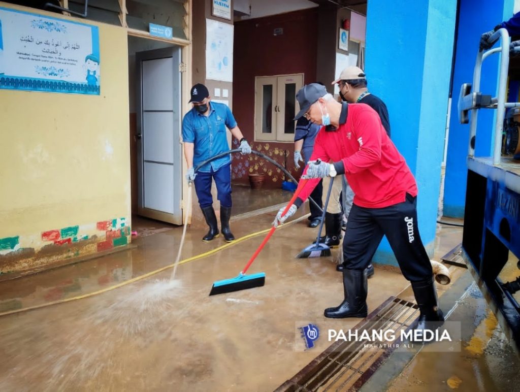 Beliau sebelum itu turun padang membersihkan Sekolah Kebangsaan (SK) Padang Rumbia, Bebar yang dilanda banjir, sekaligus merasmikan Pelancaran Pasca Banjir Daerah Pekan yang diselaraskan oleh Majlis Daerah Pekan, semalam.