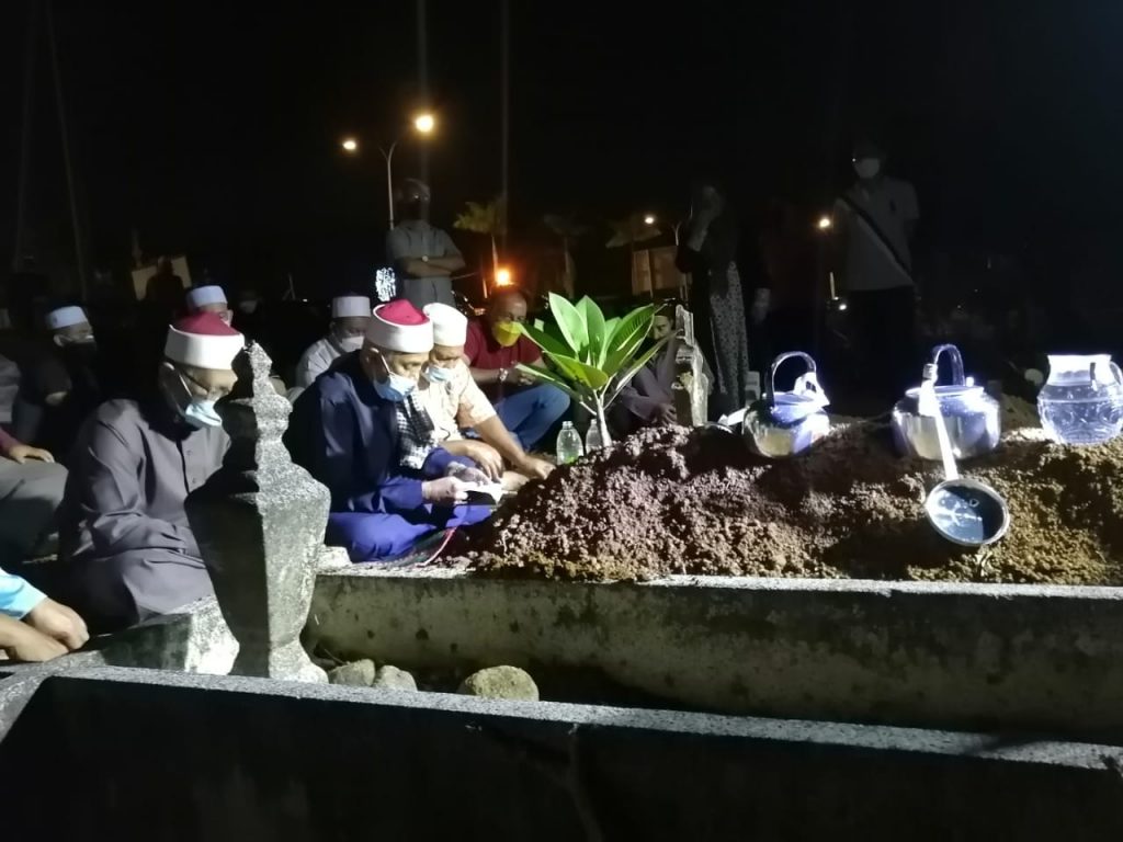 Jenazah telah dikebumikan di Tanah Perkuburan Islam Bukit Ubi di sini, pada 9.40 malam tadi selepas disolatkan di Masjid al-Muhajirin Indera Mahkota 5 di Kuantan dengan diimamkan oleh Pengerusi Jawatankuasa Hal Ehwal Agama Islam dan Pendidikan Pahang, YB. Dato’ Sri Syed Ibrahim Syed Ahmad.