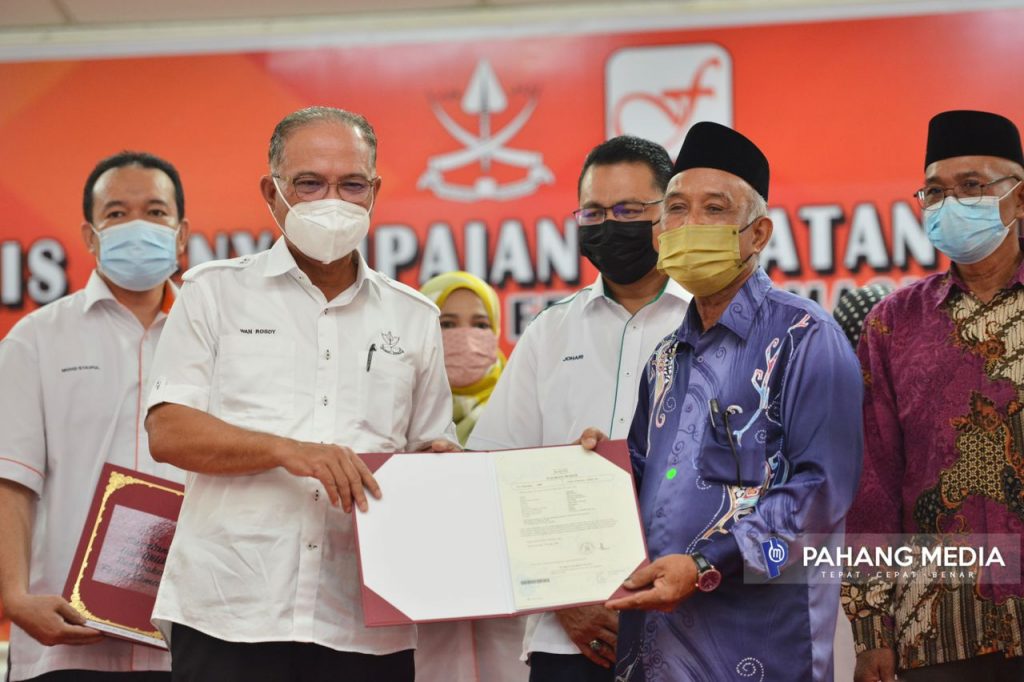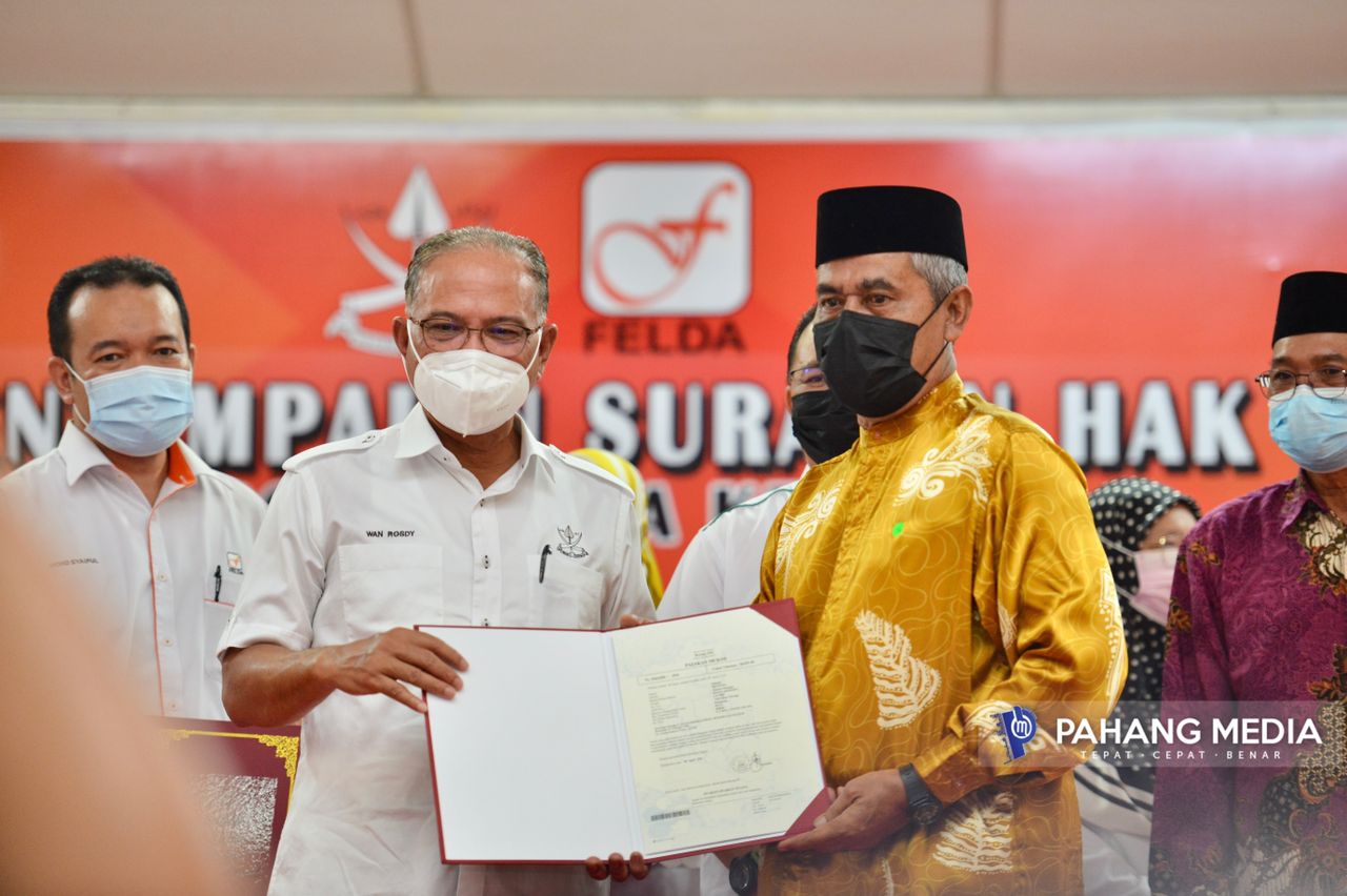 BENTONG, 23 JANUARI 2022 : Peneroka di FELDA Kemasul, Bentong bersyukur kerana menerima Suratan Hak Milik tanah yang telah diusahakan oleh Kerajaan Pahang.