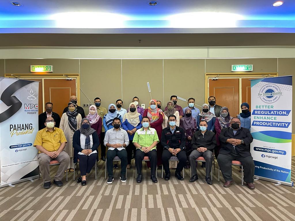 PEKAN, 18 FEBRUARI 2022 : Gabungan sinergi antara Perbadanan Produktiviti Malaysia (MPC) Wilayah Pantai Timur dengan kerjasama Bahagian Kerajaan Tempatan, Pejabat Setiausaha Kerajaan Negeri Pahang dan Pihak Berkuasa Tempatan (PBT) Negeri Pahang dilihat mampu menambah baik kualiti garis panduan pelesenan di negeri ini.