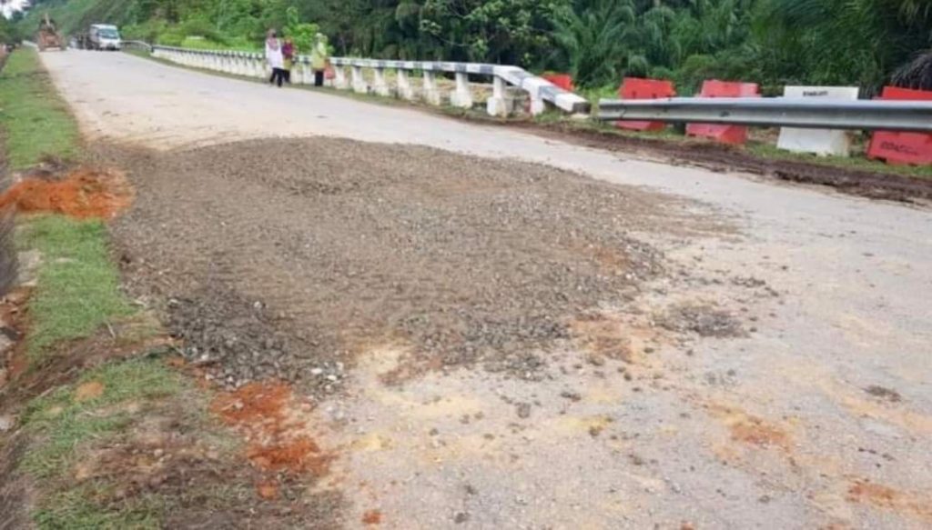 Timbalan Menteri Kewangan I, YB Dato’ Indera Mohd Shahar Abdullah dalam hantaran di laman Facebook rasminya menjelaskan bahawa jalan berkenaan kini sedang dibaikpulih.