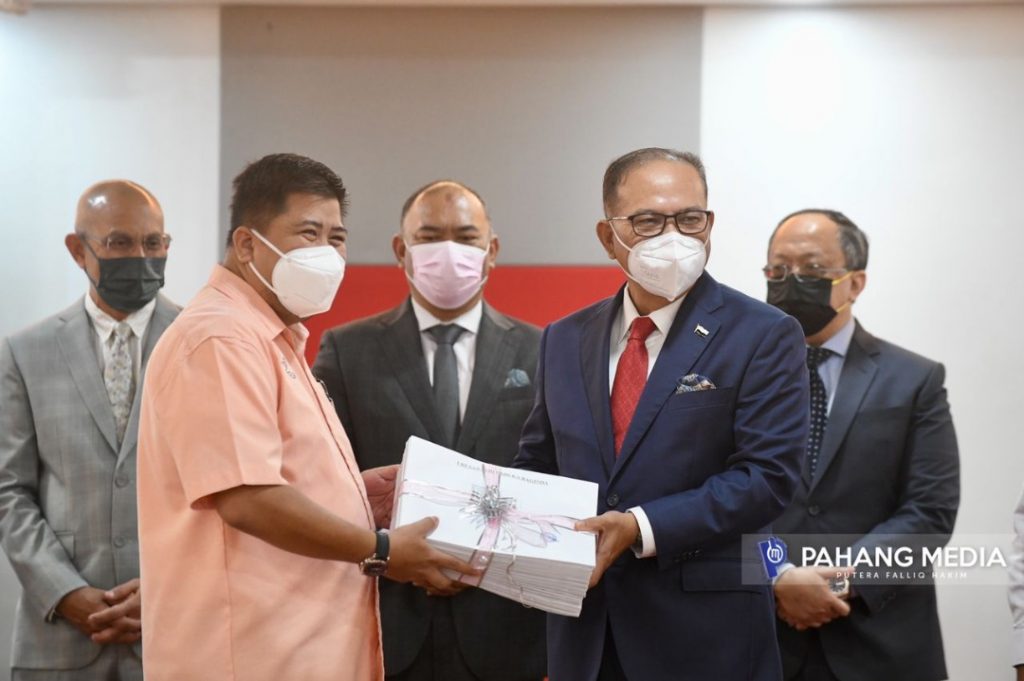 “Saya ingin mengambil kesempatan mengucapkan ribuan terima kasih kepada YAB Menteri Besar Pahang di atas penyampaian surat kelulusan tanah pada hari ini.