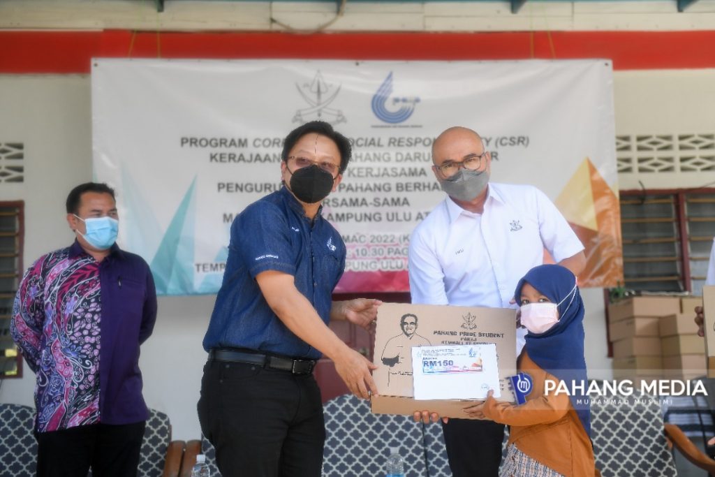 Dalam majlis sama, Kerajaan Pahang telah menyampaikan kit sumbangan Pahang Pride Student kepada 40 pelajar sekolah menengah dan sekolah rendah di Kampung Ulu Atok, manakala PAIP menyampaikan baucer bernilai RM150 kepada setiap pelajar terlibat. -PAHANGMEDIA