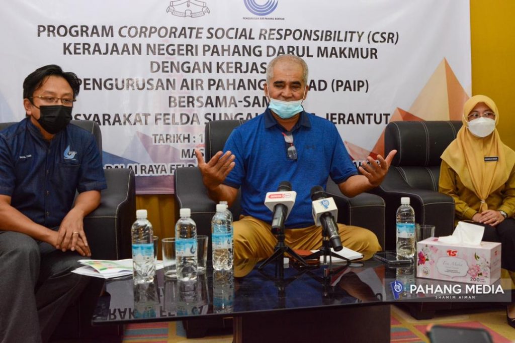 Beliau berkata demikian ketika ditemui selepas merasmikan dan menyampaikan bantuan kepada pelajar dalam Program Corporate Social Responsibility (CSR) Kerajaan Negeri Pahang Dengan Kerjasama Pengurusan Air Pahang Berhad (PAIP) Bersama-sama Penduduk Felda Sungai Retang di Balairaya Felda Sungai Retang hari ini.