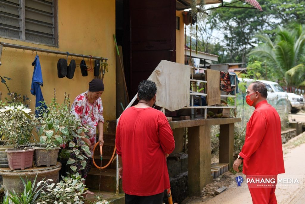 YAB Menteri Besar Pahang, Dato’ Sri Haji Wan Rosdy Wan Ismail bertanya khabar penduduk yang terlibat dalam banjir kilat di Bentong, hari ini.