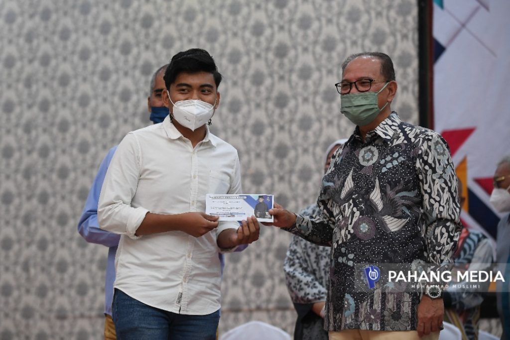 YAB Menteri Besar Pahang, Dato’ Sri Haji Wan Rosdy Wan Ismail menyerahkan cek sumbangan Kerajaan Negeri kepada seorang penerima