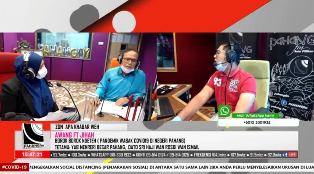 “Jadi, rakyat di negeri ini tidak perlu terlalu khuatir kerana kerajaan negeri bersama pihak kesihatan mengambil langkah-langkah proaktif bagi mengekang wabak ini dari terus merebak, tapi dengan syarat rakyat perlu terus mematuhi arahan yang dikeluarkan bagi mengelak pertambahan jumlah kes,” katanya dalam satu temubual eksklusif di Radio RTM, PAHANGfm hari ini.