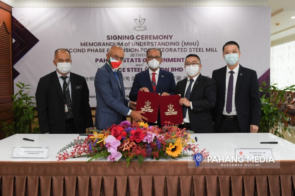 KUANTAN, 31 MAC 2022 : Kerajaan Pahang menandatangani Perjanjian Persefahaman (MoU) bersama Alliance Steel (M) Sdn Bhd (ASSB) bagi projek fasa kedua pembesaran kilang melibatkan nilai pelaburan sebanyak RM5 bilion.