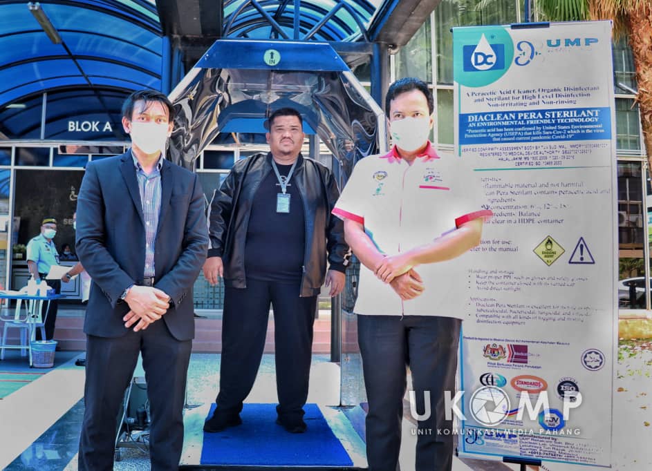 Baru-baru ini, penyelidik Universiti Malaysia Pahang (UMP) berjaya menghasilkan produk disinfektan ‘Diaclean Pera Sterilant’ halal berasaskan cuka makanan yang mampu membunuh mikroorganisma seperti bakteria, virus, fungi dan protozoa.