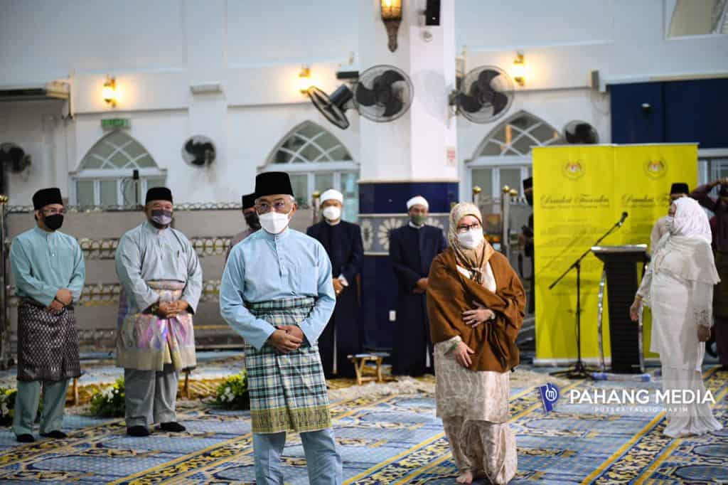 Baginda berdua turut berkenan berbuka puasa, seterusnya menunaikan solat Maghrib, Isyak, serta solat Tarawih secara berjemaah di masjid berkenaan. -PAHANGMEDIA