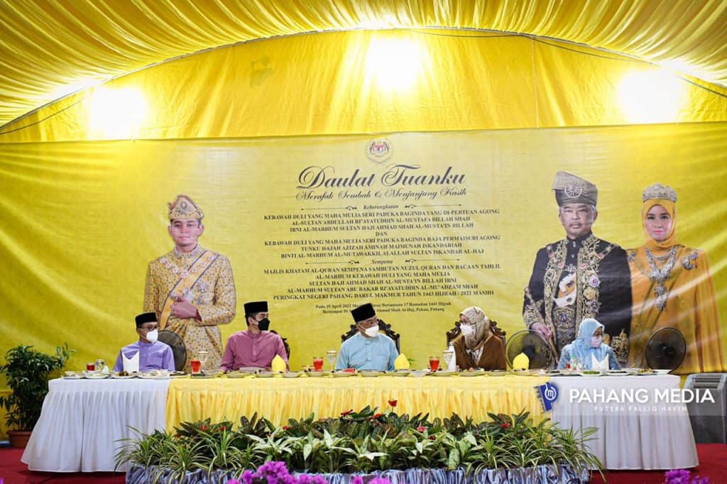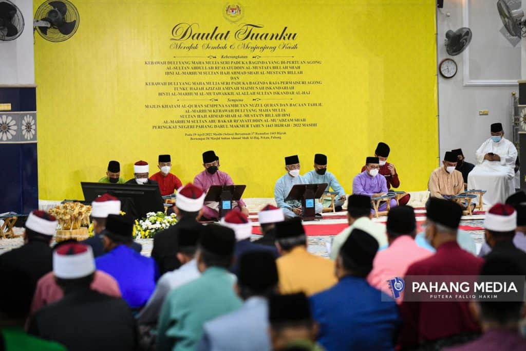 PEKAN, 19 APRIL 2022 : Kebawah Duli Yang Maha Mulia Seri Paduka Baginda Yang di-Pertuan Agong, Al-Sultan Abdullah Ri’ayatuddin Al-Mustafa Billah Shah Ibni Al-Marhum Sultan Haji Ahmad Shah Al-Musta’in Billah berkenan berangkat ke Majlis Khatam Al-Quran Sempena Sambutan Nuzul Quran dan Bacaan Tahlil Almarhum Sultan Haji Ahmad Shah Al-Musta’in Billah ibni Almarhum Sultan Abu Bakar Ri’ayatuddin Al-Mu’adzam Shah di Masjid Sultan Ahmad Shah Al-Haj di sini.
