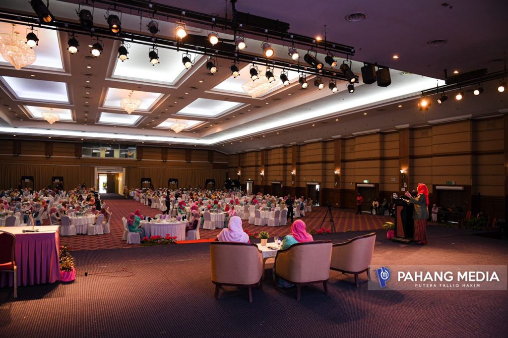 Turut hadir Pengerusi Persatuan Amal Isteri Wakil Rakyat Pahang (Teratai) Datin Sri Dato’ Burhah Mohamed serta Pengerusi Puspanita Cawangan Negeri Pahang, Datin Sri Kamariah Mohamad.