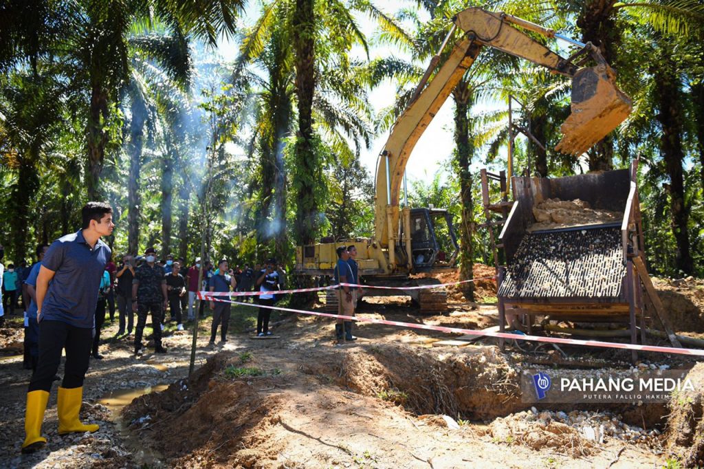 KDYMM Pemangku Raja Pahang Tengku Mahkota Tengku Hassanal Ibrahim Alam Shah Ibni Al-Sultan Abdullah Ri’ayatuddin Al-Mustafa Billah Shah berkenan melihat teknik melombong emas menerusi Skim Pelombong Kecil, di Kampung Dada Kering, Lipis hari ini.