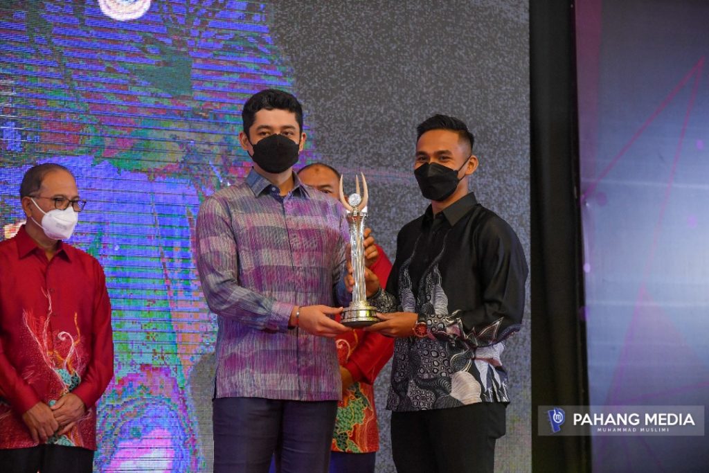 Anugerah disampaikan oleh Kebawah Duli Yang Maha Mulia Pemangku Raja Pahang Tengku Mahkota Tengku Hassanal Ibrahim Alam Shah Ibni Al-Sultan Abdullah Ri’ayatuddin Al-Mustafa Billah Shah dalam satu majlis di Hotel Grand Darul Makmur hari ini.