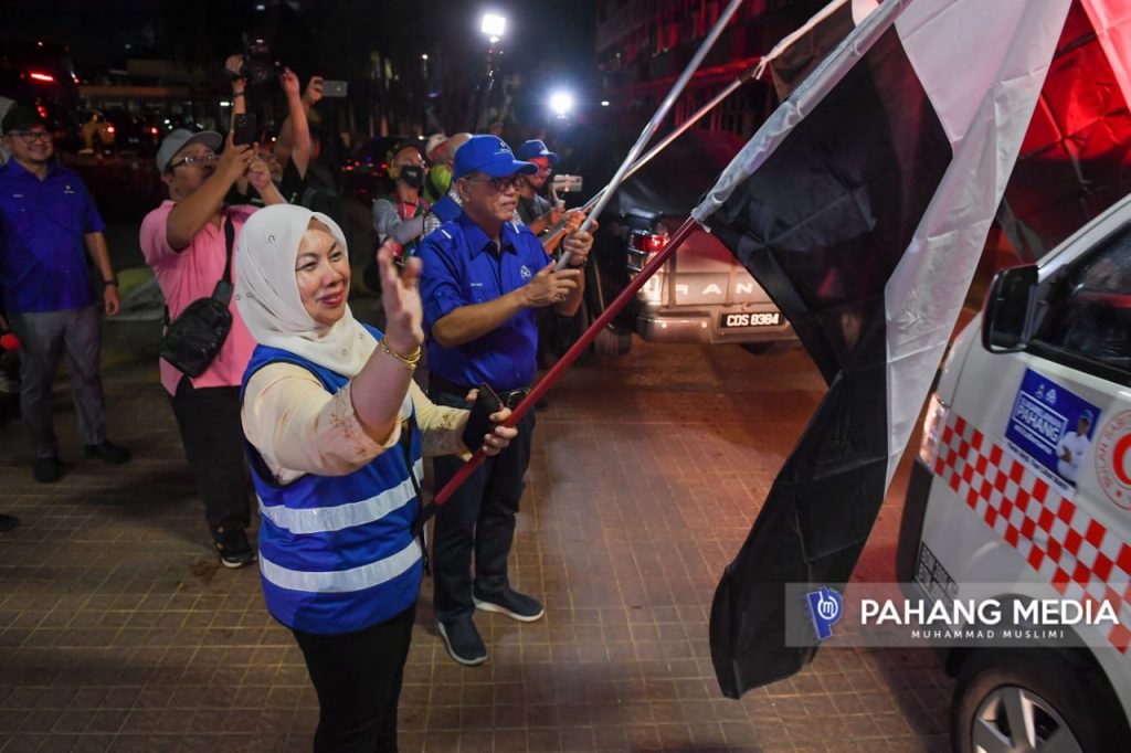 Beliau turut menasihati para sukarelawan agar menjaga keselamatan diri dan disiplin ketika dalam perjalanan dan melaksanakan misi ke sukarelawan dengan membawa nama Kerajaan Negeri Pahang.